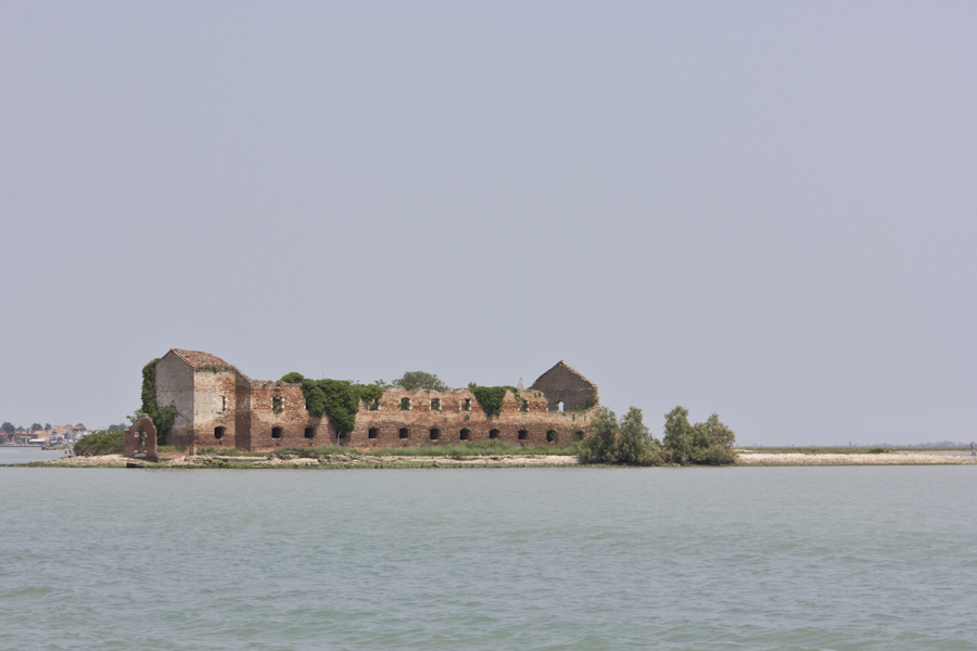 Burano itself is known for handmade laces and colorfully painted houses, and is a delightful place to walk around for an hour or so. But on the way there, I’d seen that the little island was connected to a larger one, Mazzorbo, by a walkable bridge, and I’d seen several unoccupied restaurants on the waterfront there.