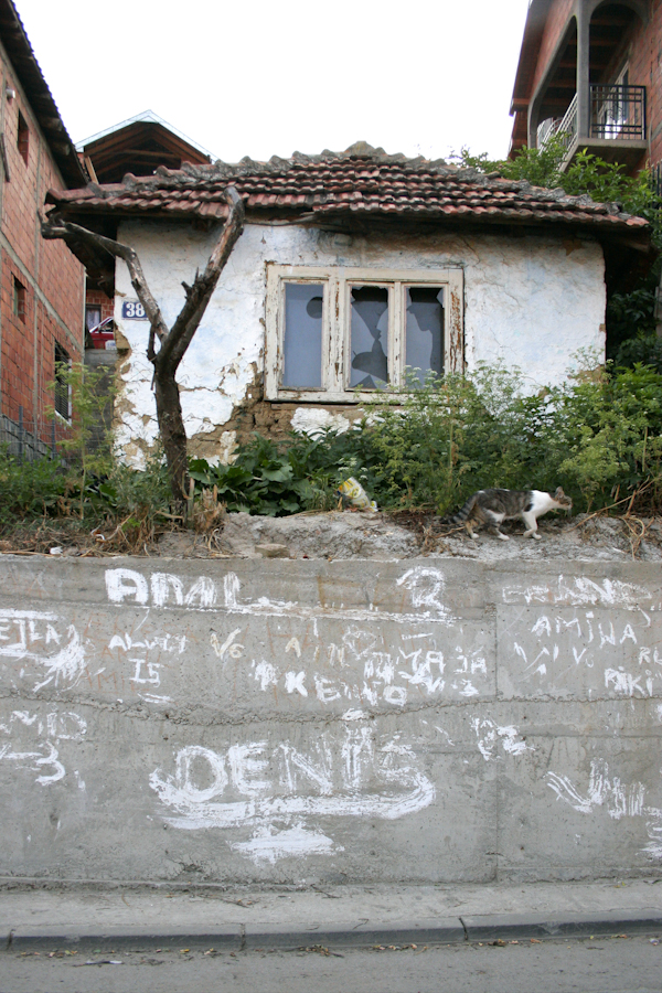 Graffiti on a house’s front wall. Novi Pazar.